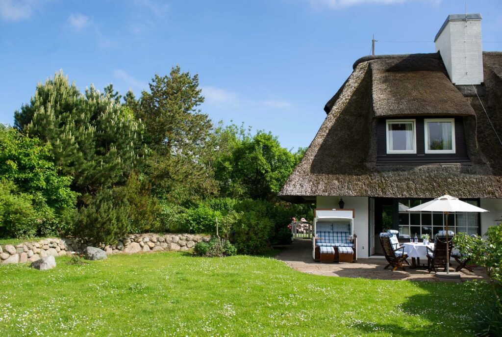 Das 4-Sterne Ferien Domizil im Benendikenwai 11 in Keitum gehört seit Frühjahr 2014 zum Portfolio der exklusiven Domizile des Benen-Diken-Hofs. Es bietet anspruchsvolle Gemütlichkeit gepaart mit friesischem Landhaus-Flair. Sechs Personen finden auf drei Ebenen und rund 110 m² ausreichend Platz. Es liegt in unmittelbarer Nähe des Benen-Diken-Hofs und begeistert d...Weiterlesenurch seinen großzügigen Wohnbereich. Beige- und Blautöne in vielen Varianten sowie Lindgrün, Rot und Flieder sind die Farben der anspruchsvollen Wohn- und Schlafräume. Auch die völlig neu überarbeiteten Bäder werden begeistern, denn sie versprechen modernes Flair und Badegenuss. Das große Wohnzimmer mit gemütlichem Essplatz und launchiger Sitzgruppe am Kamin, öffnet sich zu der in Naturstein ausgeführten Terrasse. Sie ist nach Südosten ausgerichtet und erweitert den Wohnbereich zu den Sonnenplätzen im 500 m² großen Garten. Gäste, die die Angebote des Hotels, wie Nutzung des WOLKENLÖN SPA, milon Zirkel, Massage und Kosmetik u.a. intensiver buchen möchten, haben von hier aus eine sehr gute Verbindung zur Hofanlage.Weniger lesen